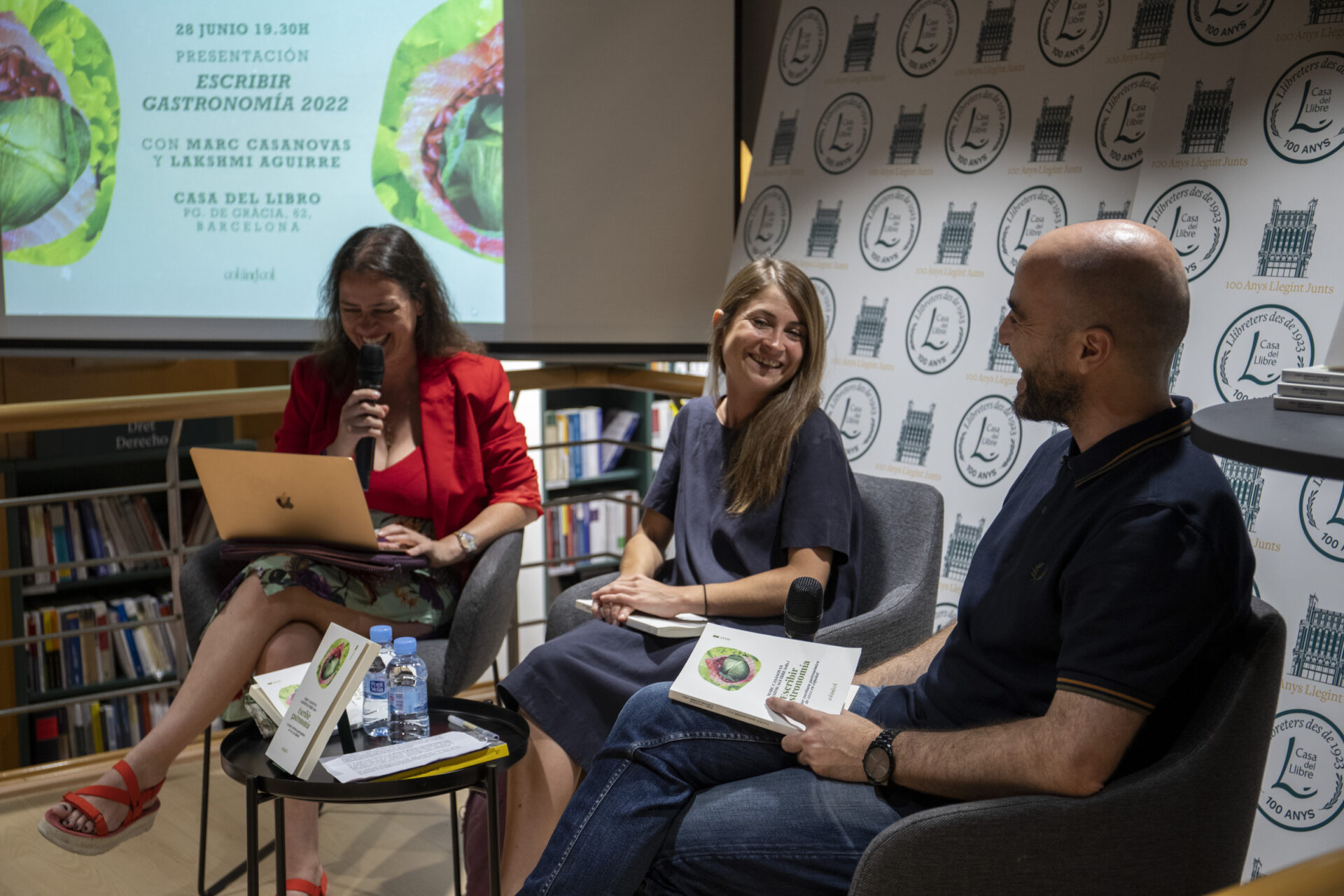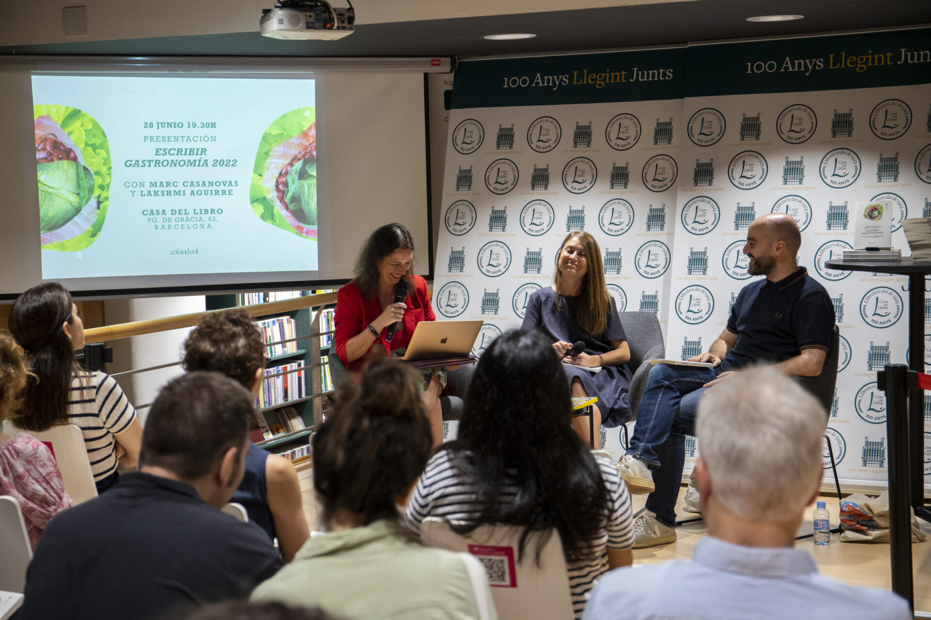 La presentación en Barcelona contó con sus editores —Lakshmi Aguirre y Marc Casanovas— junto a la directora de The Foodie Studies, Yanet Acosta, y varios de los autores y autoras participantes: Gabriela Polit, Ana Luisa Islas, Laia Shamirian, Cris Jolonch, Albert Molins y Carmen Alcaraz del Blanco.